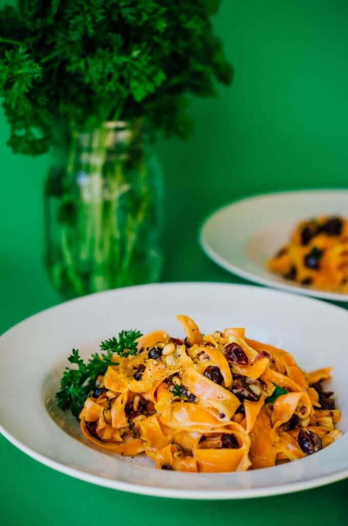 - SHAVED – Live Eat Learn gets creative by shaving thin slices of sweetpotatoes to create a yummy, comforting bowl of Sweetpotato Fettuccini. Tossed in gorgonzola and cranberries, her fettuccini is a not only decadent and delightful, but gluten-free too!