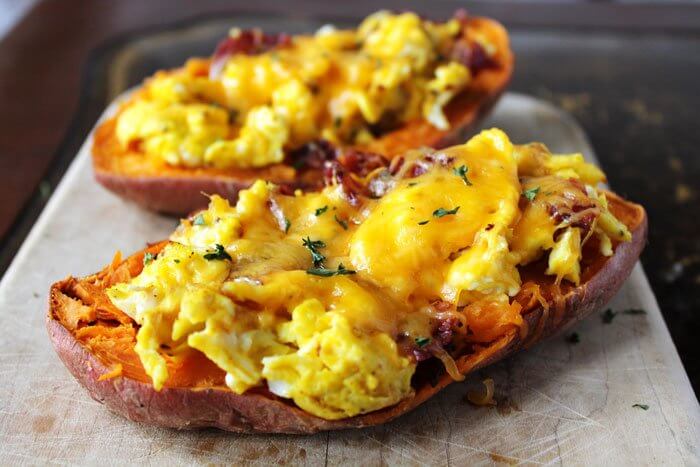 If you like to start your day on the savory side, why not try Breakfast Stuffed Sweetpotatoes from Smile Sandwich? Cheesy, healthy, and even good on-the-go, these stuffed sweetpotatoes will make breakfast your favorite meal of the day!