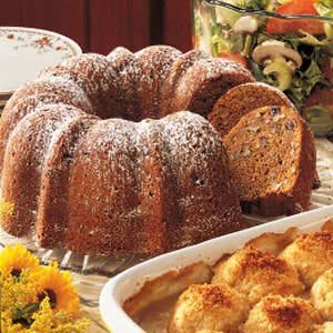 Transfer to a greased and floured 10-in. fluted tube pan. Bake at 350° for 70-80 minutes or until a toothpick inserted near the center comes out clean. Cool for 10 minutes before removing from pan to a wire rack to cool completely. Dust with confectioners’ sugar if desired. Yield: 12-16 servings.