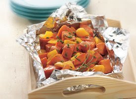 | Cover and grill packet over medium heat 15 to 20 minutes or until sweet potatoes are tender. Place packet on serving platter. Cut large X across top of packet; unfold foil. Sprinkle with chives. | |
