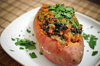 Did you know that a small baked sweet potato with the skin on is only 105 calories? If you love sweet potatoes as much as I do, this will probably come as A. a shock and B. an amazing revelation to you!They are filling!