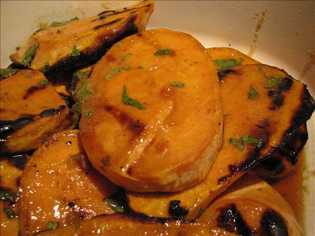 7. Spoon the molasses mixture evenly over cooked potato slices and serve.
