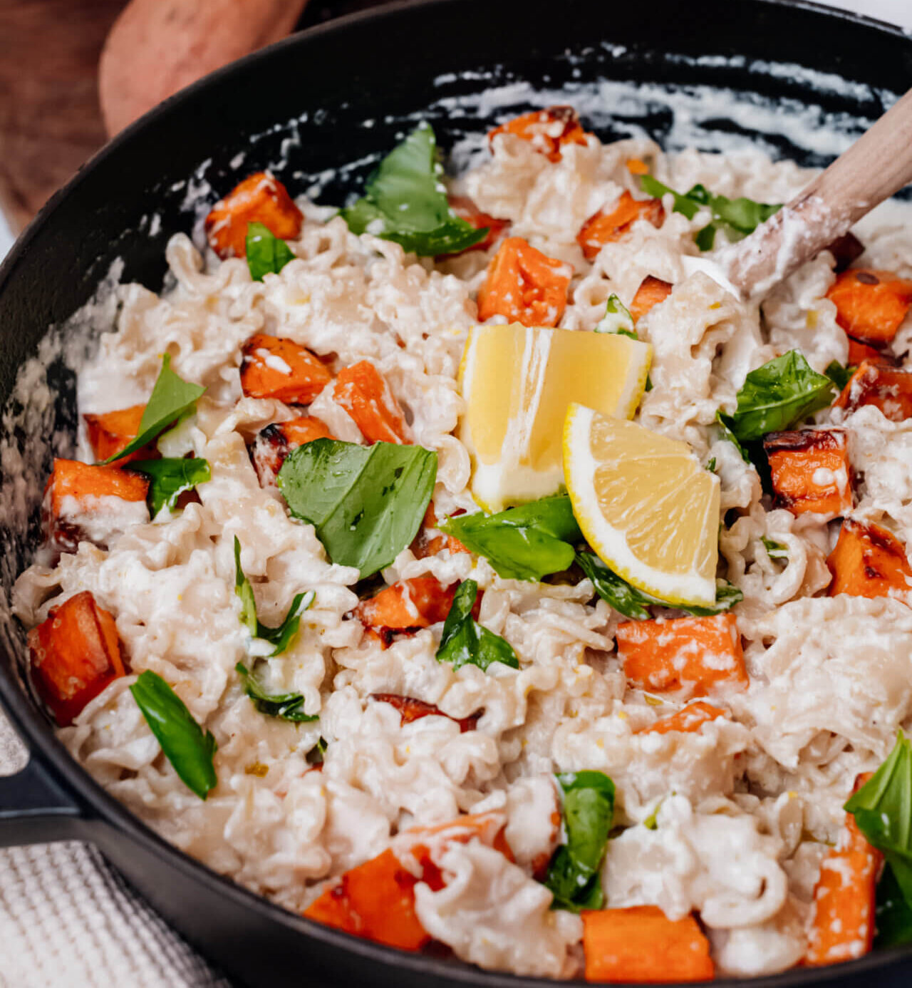 Lemon Ricotta Pasta with Sweetpotato & Basil