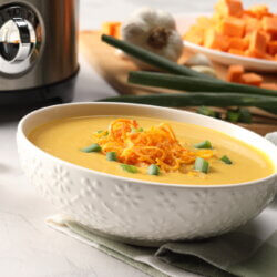 This is a great fall soup that is quick, easy, and delicious. Garnish the soup with crispy onions or homemade croutons.
