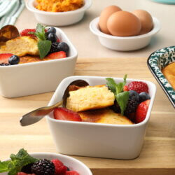 Preheat oven to 350˚F. Beat egg whites and fold into cornmeal mixture. Spread into prepared dish. Bake until puffy, golden brown and just set, about 30 to 35 minutes.