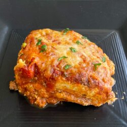Preheat oven to 375-degrees. Coat a square baking dish (about 8 ½ x 8 ½-inches) with cooking spray. In medium nonstick skillet, start cooking the ground beef or plant based option over medium heat, stirring often and breaking it into crumbles as it cooks. When almost cooked throughout, stir in the Herbes de Provence. When cooked throughout, turn off the heat, stir in the marinara sauce and set aside.