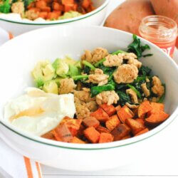 Divide the ricotta, avocado, sweetpotatoes, and chicken/spinach mixture evenly between four bowls. Drizzle with hot honey and enjoy!