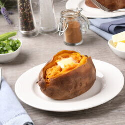 Simple and satisfying, these oven-baked sweetpotatoes are perfectly tender with caramelized edges and a naturally sweet, creamy center. Finished with a pat of butter and a sprinkle of kosher salt, this easy side dish is wholesome, comforting, and pairs beautifully with just about any meal.