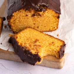 Sweetpotato Loaf with Chocolate Ganache is a moist, warmly spiced quick bread made with mashed sweetpotatoes, cinnamon, and nutmeg. Finished with a rich chocolate ganache poured over the top, this dessert-style loaf balances comforting spice with smooth chocolate for a decadent treat.