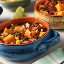 This sweetpotato chili will become a meatless Monday dinner staple in no time. The heartiness of the sweetpotatoes, beans and veggies will make any carnivore forget all about the lack of meat in the first place. The tangy lime finish zests up this vegetarian delight, creating a southwestern flair that will surely satisfy any veggie or meat lover. Sweetpotato chili is perfect as a stand-alone meal, topped (or smothered) with cheese, and garnished with chopped green onions, cilantro, or avocado.