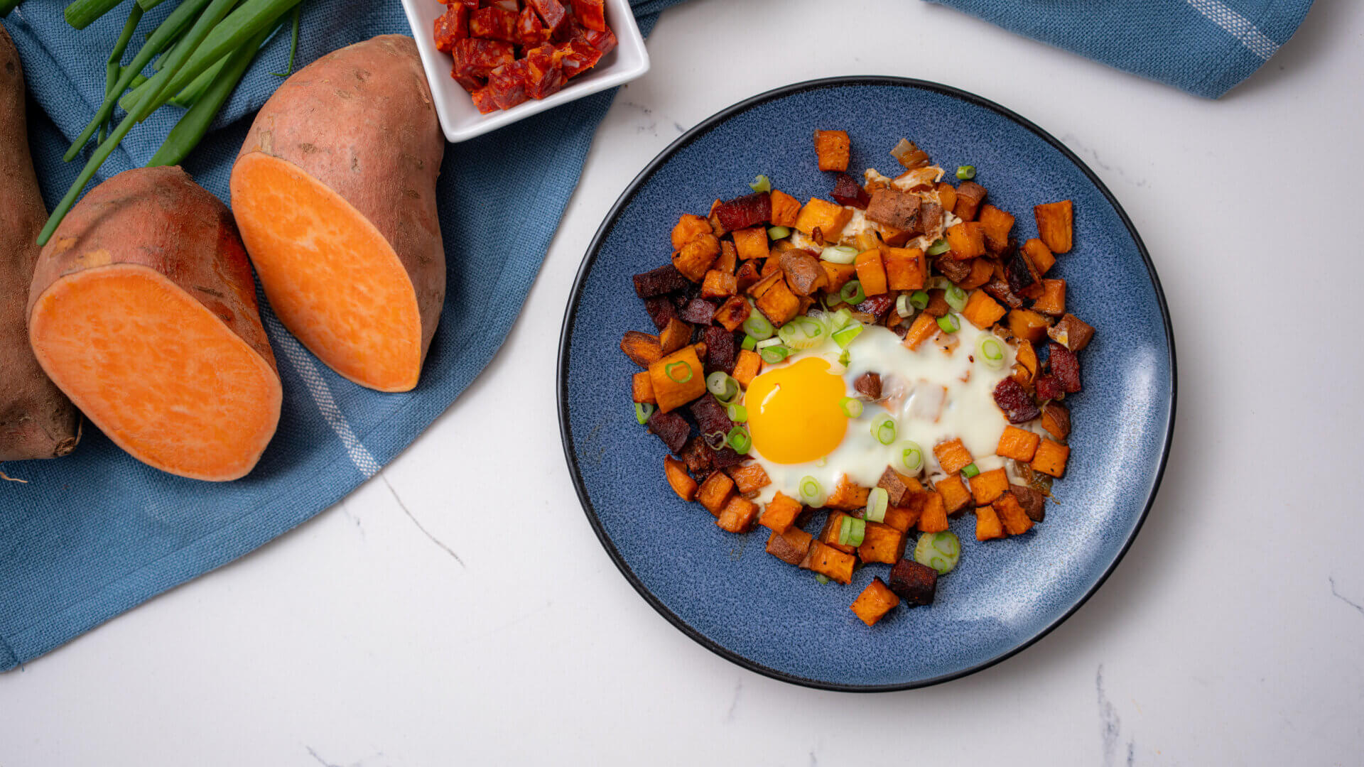 Recipe by Coley Cooks. Start your morning deliciously with Sweetpotato & Chorizo Hash with Eggs. Yours truly adds a sweet balance to the spicy chorizo. Dust with some smokey paprika for a breakfast home run that is sure to satisfy any morning cravings.